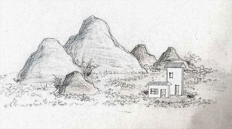 (航拍景色還原小景素描圖)