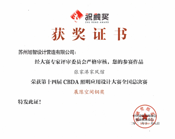 本屆祝融獎采用了全新評選制度,是通過競演、大眾評審投票、資深專家點評投票等各方面各平臺綜合評定,最終評選出獲獎單位。旭智策劃、設計、施工一體化作品張家港家風館經(jīng)過重重選拔,從競選項目中脫穎而出,成功獲獎。