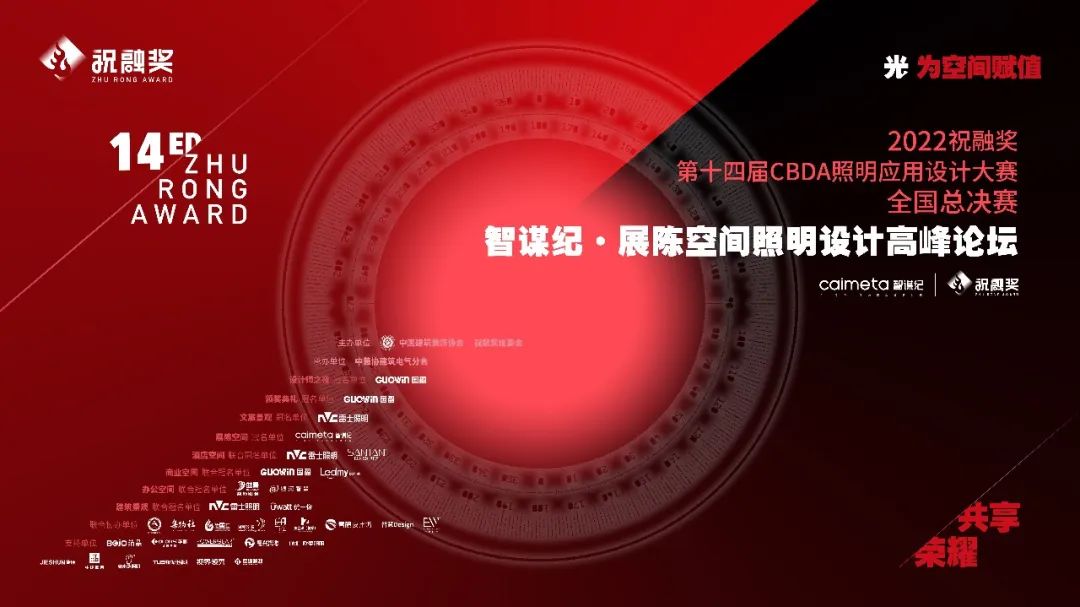 “祝融獎”評選由中國建筑裝飾協(xié)會主辦,中國建筑裝飾協(xié)會建筑電氣分會承辦,自2009年正式啟動以來,始終肩負著光文化的傳承、創(chuàng)新與傳播的使命,被行業(yè)稱為“照明設計的風向標”。作為業(yè)內(nèi)最早、最專業(yè)、最高規(guī)格的中國燈光設計賽事,祝融獎旨在“普及照明設計知識、推動照明設計發(fā)展”,檢驗建筑和裝飾設計師在照明設計領域的實踐成果。