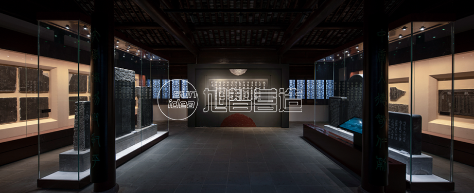 3000k暖白光為主體色溫,使得室內(nèi)外光照系統(tǒng)基本保持一致。燈箱造型照明采用內(nèi)部透光,4200K白光為主,增加展示層次。對于碑苑的部分古跡,燈光系統(tǒng)和獨立密封展柜結(jié)合進行局部重點照明,從頂部采用低功率嵌入式射燈均勻照明,盡量低照明水平以保護文物。