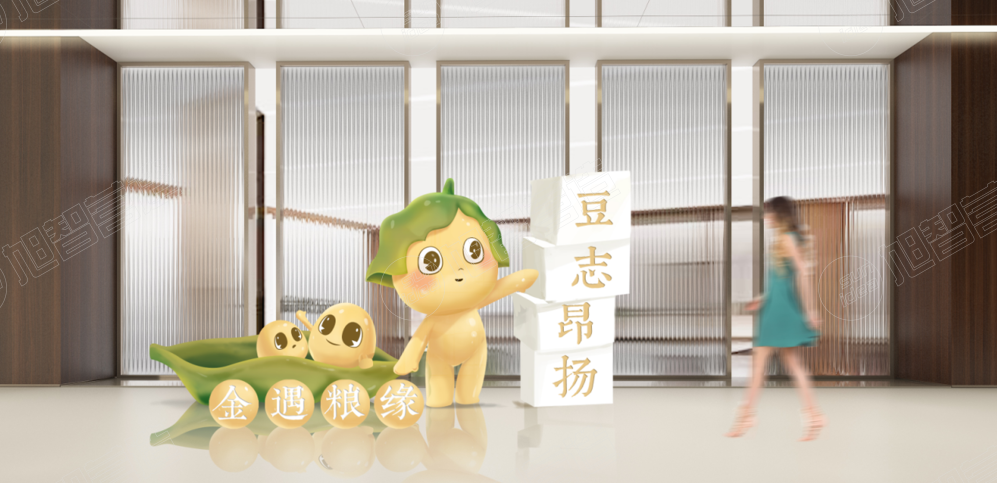 “尋根旅”以中國大豆、中國豆腐的前世今生,彰顯中華傳統(tǒng)美食的文化內(nèi)涵,全面展示亙古通今的大豆傳奇;為了突顯企業(yè)的專屬文化特色,讓空間敘事更加寓教于樂,旭智團隊還為金記食品量身打造了一組IP形象代言人“小金豆”?;顫娍蓯鄣摹靶〗鸲埂币矔砜破招【`,走進金記夢工坊,帶領(lǐng)大家開啟一段奇妙的尋根之旅。